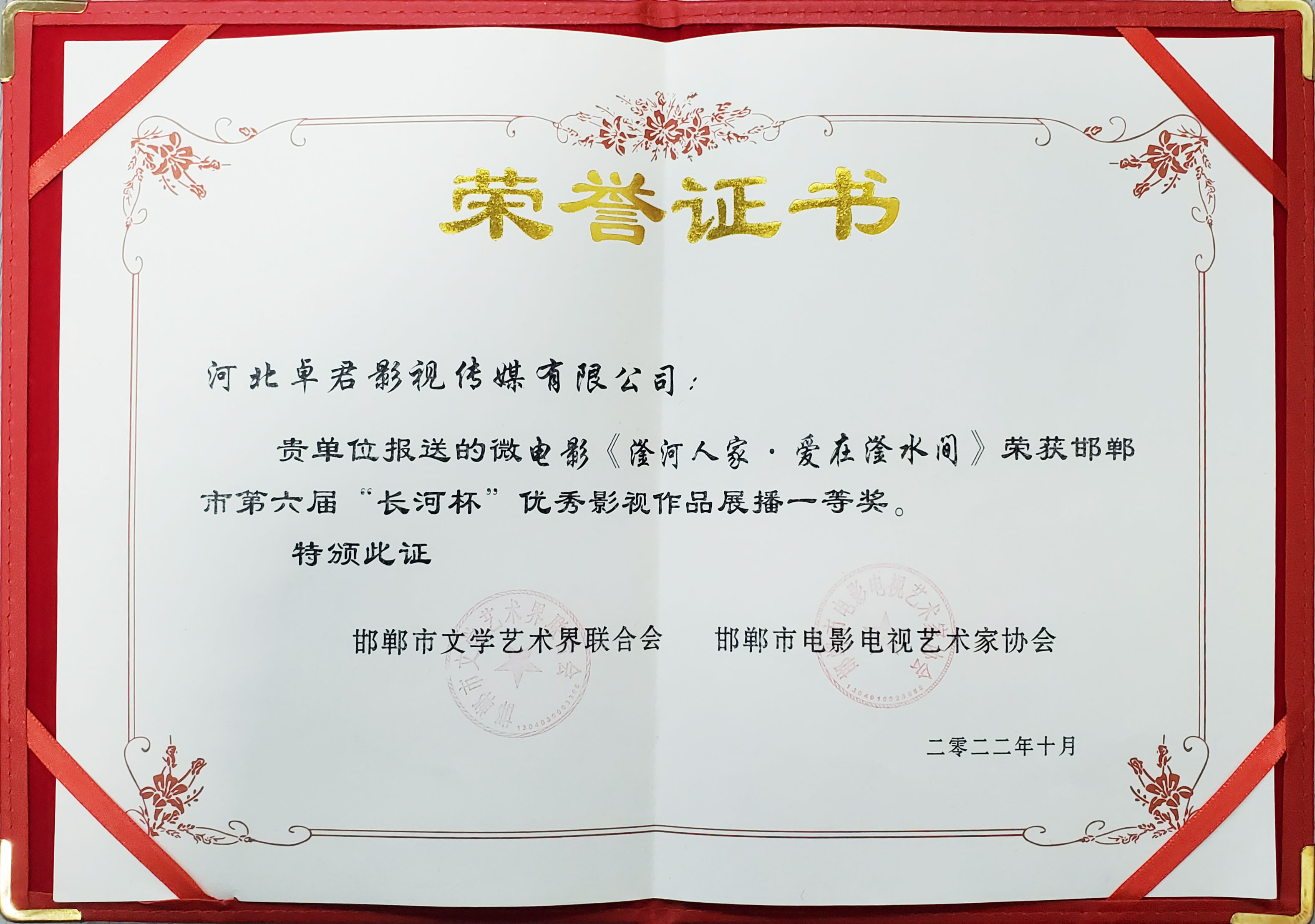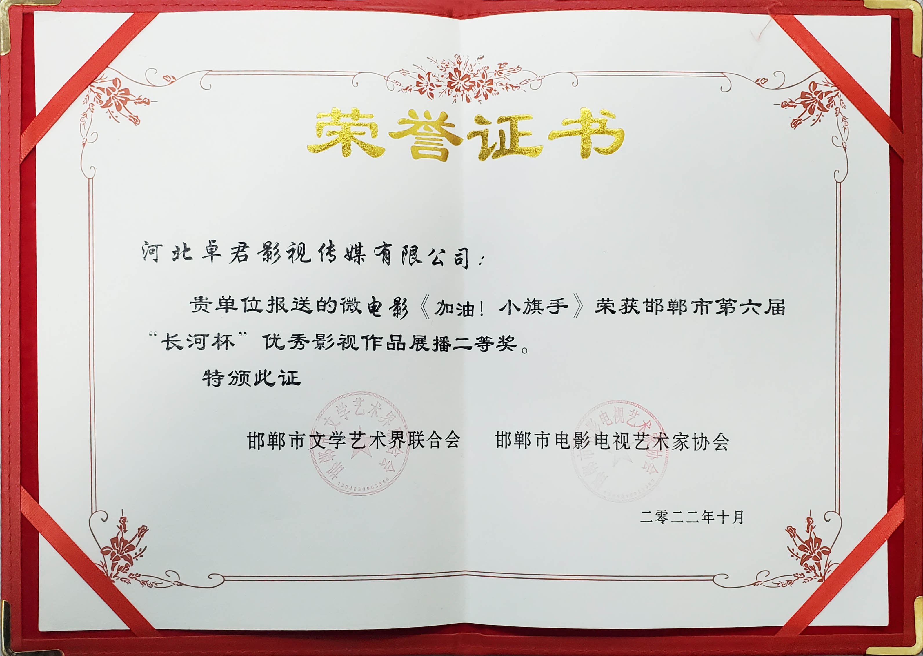 君卓影視公益微電影榮獲邯鄲市第六屆“長(zhǎng)河杯”優(yōu)秀影視作品一、二等獎(jiǎng)